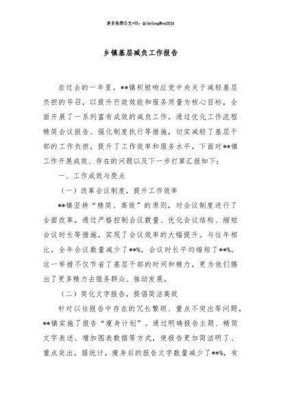 / 【七哥公文】2024年:乡镇基层减负工作报告+更多免费公文+VX:QiGeGongWen2024