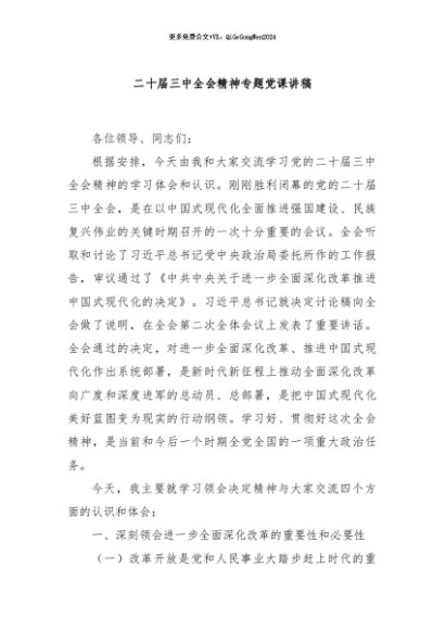/ 【七哥公文】2024年:二十届三中全会精神专题党课讲稿+更多免费公文+VX:QiGeGongWen2024