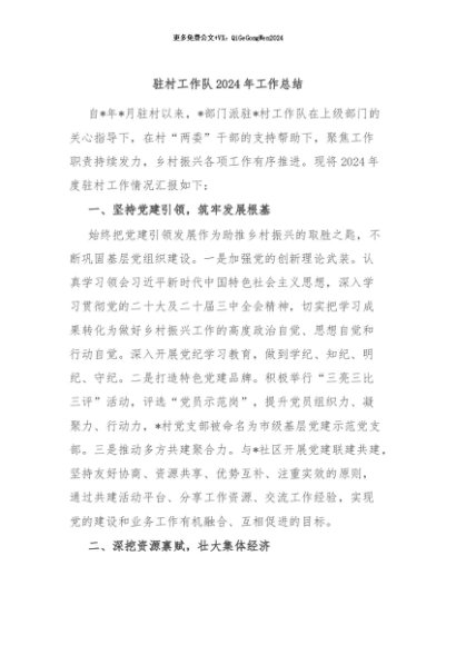 / 【七哥公文】2024年:驻村工作队2024年工作总结+更多免费公文+VX:QiGeGongWen2024