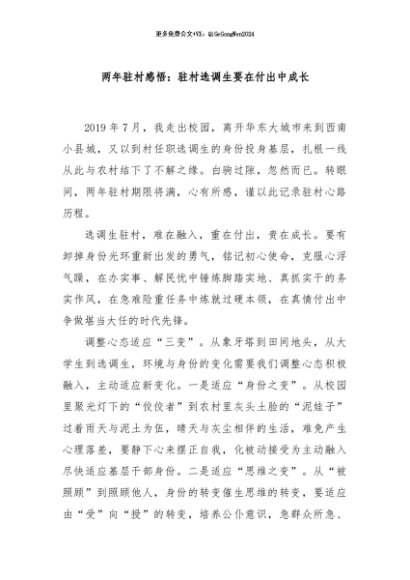 【七哥公文】2024年:两年驻村感悟:驻村选调生要在付出中成长 (1)+更多免费公文+VX:QiGeGongWen2024