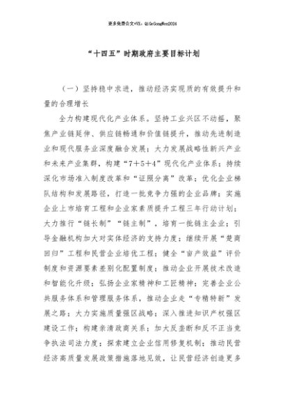 / 【七哥公文】2024年:“十四五”时期政府主要目标计划+更多免费公文+VX:QiGeGongWen2024