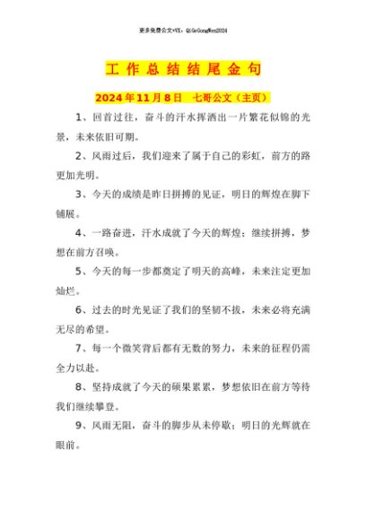 / 【七哥公文】2024年:(40例)工作总结结尾金句+更多免费公文+VX:QiGeGongWen2024