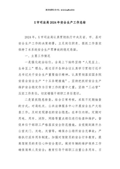 / 【七哥公文】2024年:X市司法局2024年安全生产工作总结+更多免费公文+VX:QiGeGongWen2024