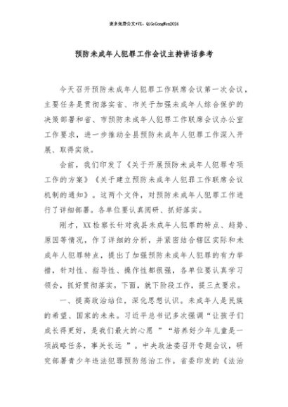 / 【七哥公文】2024年:预防未成年人犯罪工作会议主持讲话参考+更多免费公文+VX:QiGeGongWen2024