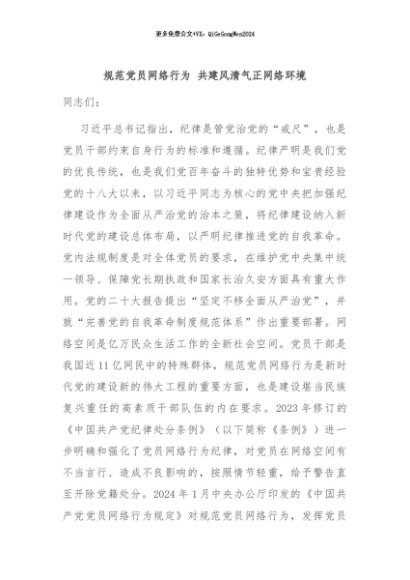 【七哥公文】2024年:规范党员网络行为 共建风清气正网络环境+更多免费公文+VX:QiGeGongWen2024