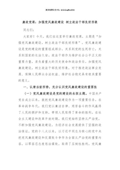 / 【七哥公文】2024年:廉政党课:加强党风廉政建设 树立政法干部良好形象+更多免费公文+VX:QiGeGongWen2024
