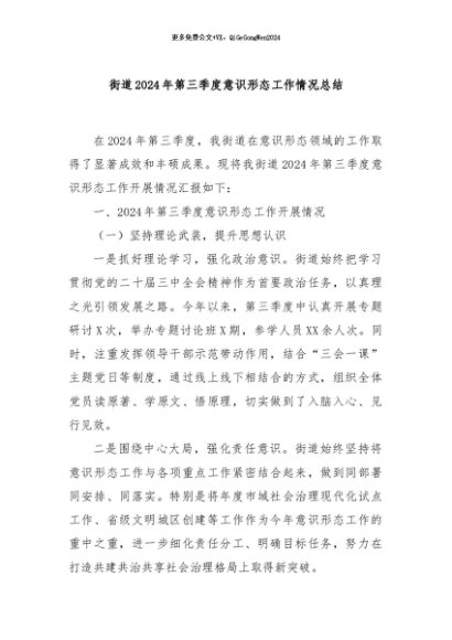 / 【七哥公文】2024年:街道2024年第三季度意识形态工作情况总结+更多免费公文+VX:QiGeGongWen2024