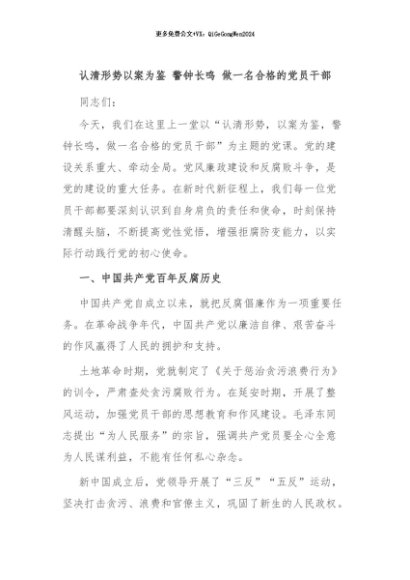 / 【七哥公文】2024年:认清形势以案为鉴 警钟长鸣 做一名合格的党员干部+更多免费公文+VX:QiGeGongWen2024