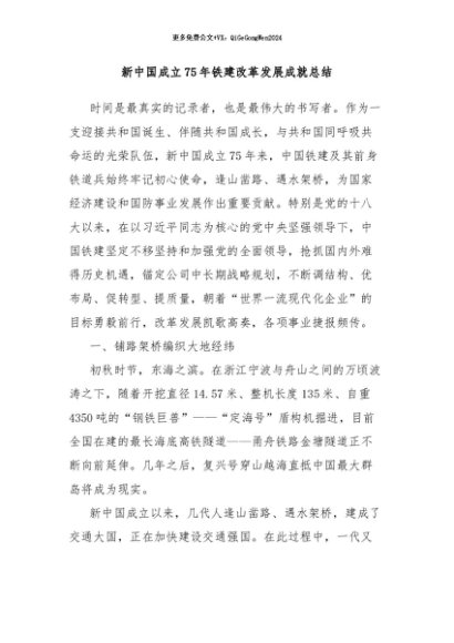 / 【七哥公文】2024年:新中国成立75年铁建改革发展成就总结+更多免费公文+VX:QiGeGongWen2024