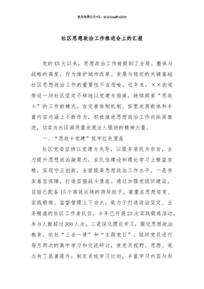 / 【七哥公文】2024年:社区思想政治工作推进会上的汇报+更多免费公文+VX:QiGeGongWen2024
