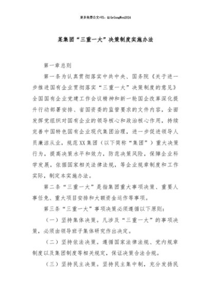 / 【七哥公文】2024年:某集团“三重一大”决策制度实施办法+更多免费公文+VX:QiGeGongWen2024