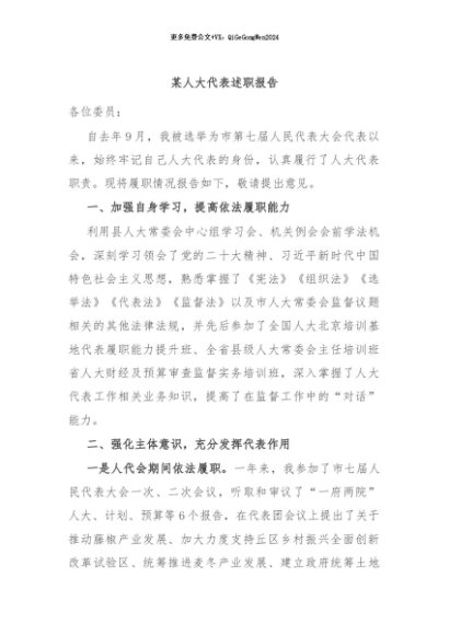 / 【七哥公文】2024年:某人大代表述职报告+更多免费公文+VX:QiGeGongWen2024