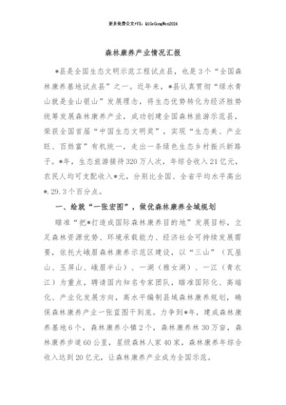 / 【七哥公文】2024年:森林康养产业情况汇报+更多免费公文+VX:QiGeGongWen2024