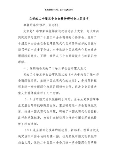 / 【七哥公文】2024年:在党的二十届三中全会精神研讨会上的发言+更多免费公文+VX:QiGeGongWen2024