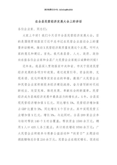 / 【七哥公文】2024年:在全县民营经济发展大会上的讲话+更多免费公文+VX:QiGeGongWen2024