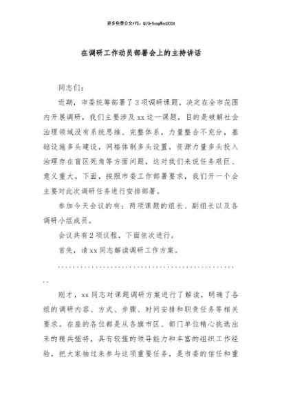/ 【七哥公文】2024年:在调研工作动员部署会上的主持讲话+更多免费公文+VX:QiGeGongWen2024