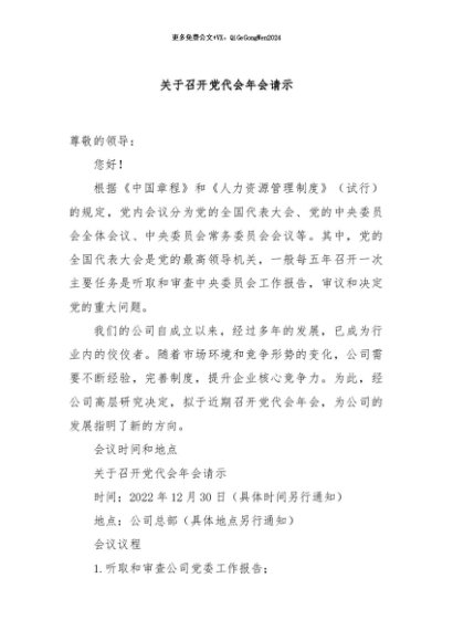 【七哥公文】2024年:关于召开党代会年会请示+更多免费公文+VX:QiGeGongWen2024