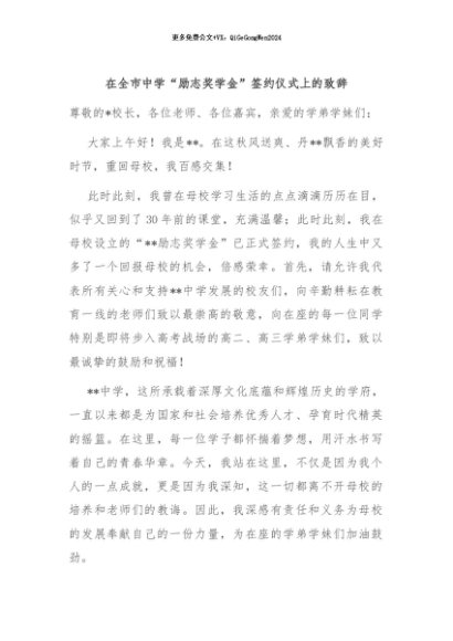 / 【七哥公文】2024年:在全市中学“励志奖学金”签约仪式上的致辞+更多免费公文+VX:QiGeGongWen2024