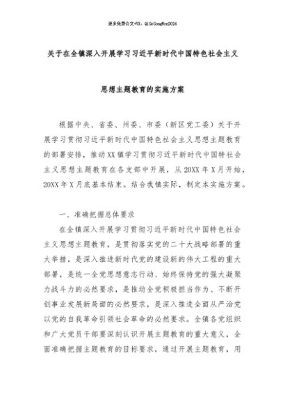 【七哥公文】2024年:关于在全镇深入开展学习习近平新时代中国特色社会主义思想主题教育的实施方案+更多免费公文+VX:QiGeGongWen2024