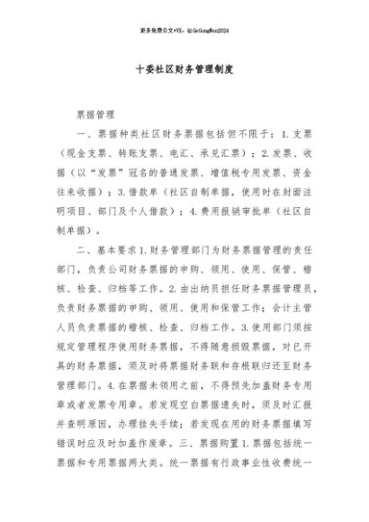 / 【七哥公文】2024年:十委社区财务管理制度+更多免费公文+VX:QiGeGongWen2024