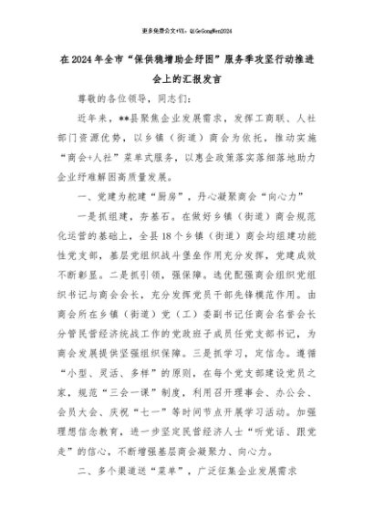 【七哥公文】2024年:在2024年全市“保供稳增助企纾困”服务季攻坚行动推进会上的汇报发言+更多免费公文+VX:QiGeGongWen2024