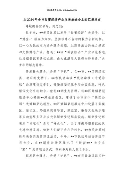 【七哥公文】2024年:在2024年全市甜蜜经济产业发展推进会上的汇报发言+更多免费公文+VX:QiGeGongWen2024