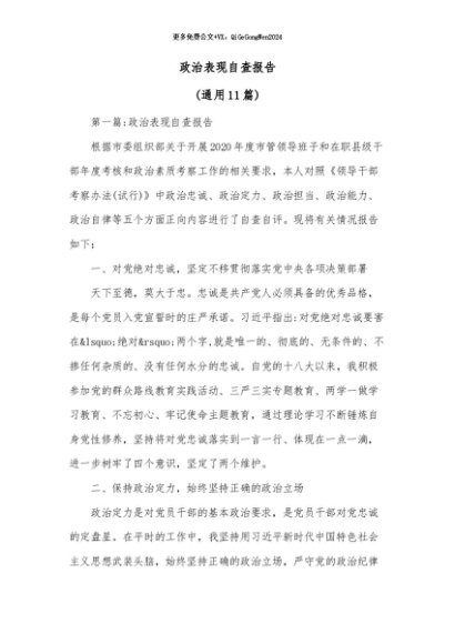 / 【七哥公文】2024年:(11篇)政治表现自查报告+更多免费公文+VX:QiGeGongWen2024