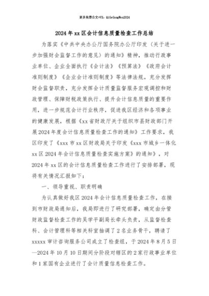 / 【七哥公文】2024年:2024年xx区会计信息质量检查工作总结+更多免费公文+VX:QiGeGongWen2024