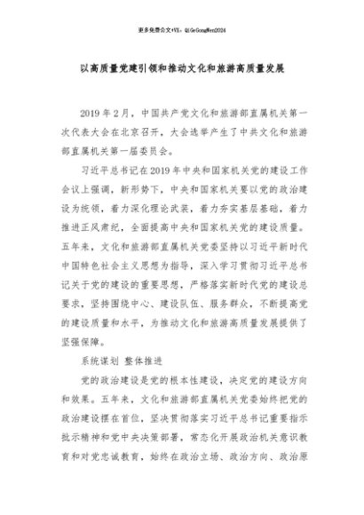 【七哥公文】2024年:以高质量党建引领和推动文化和旅游高质量发展+更多免费公文+VX:QiGeGongWen2024