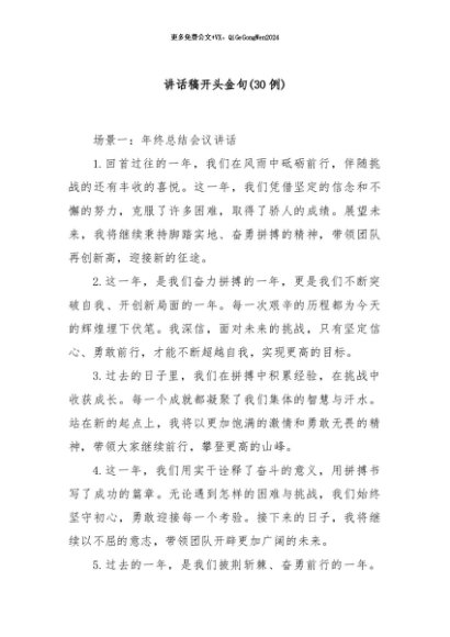 / 【七哥公文】2024年:(30例)讲话稿开头金句+更多免费公文+VX:QiGeGongWen2024