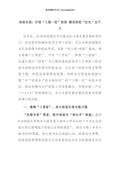 【七哥公文】2024年:经验交流:打造“三强一优”班组 激活班组“红色”生产力+更多免费公文+VX:QiGeGongWen2024