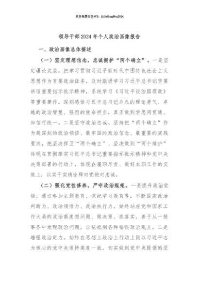 【七哥公文】2024年:领导干部2024年个人政治画像报告+更多免费公文+VX:QiGeGongWen2024