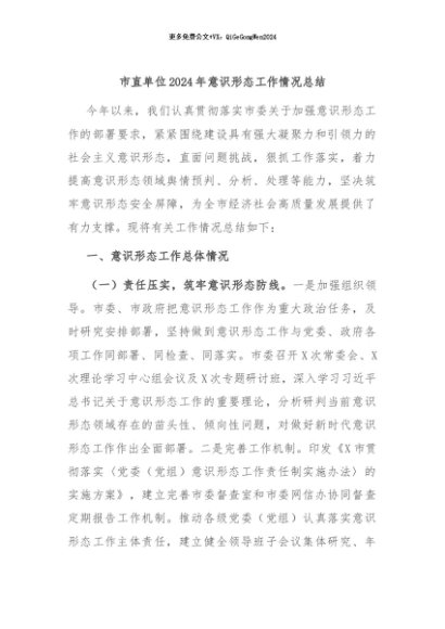 / 【七哥公文】2024年:市直单位2024年意识形态工作情况总结+更多免费公文+VX:QiGeGongWen2024