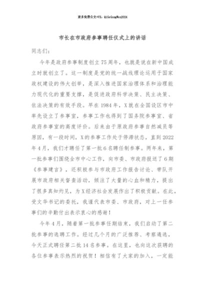 / 【七哥公文】2024年:市长在市政府参事聘任仪式上的讲话+更多免费公文+VX:QiGeGongWen2024