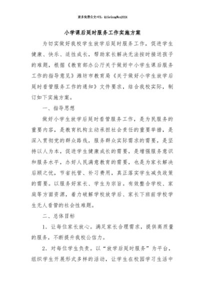 / 【七哥公文】2024年:小学课后延时服务工作实施方案+更多免费公文+VX:QiGeGongWen2024