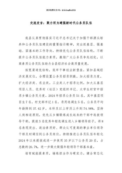 / 【七哥公文】2024年:交流发言:聚力而为建强新时代公务员队伍+更多免费公文+VX:QiGeGongWen2024