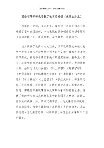 / 【七哥公文】2024年:国企领导干部观看警示教育片感悟(永远在路上)+更多免费公文+VX:QiGeGongWen2024