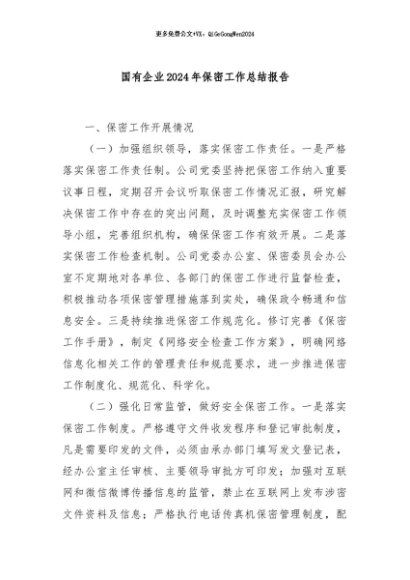 / 【七哥公文】2024年:国有企业2024年保密工作总结报告+更多免费公文+VX:QiGeGongWen2024