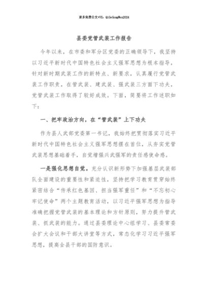 / 【七哥公文】2024年:县委党管武装工作报告+更多免费公文+VX:QiGeGongWen2024