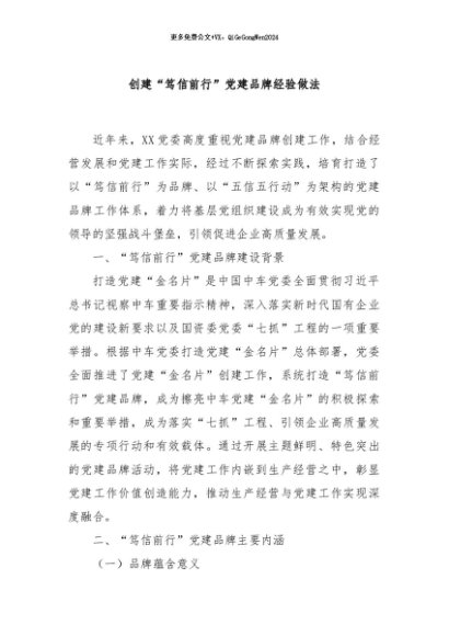 / 【七哥公文】2024年:创建“笃信前行”党建品牌经验做法+更多免费公文+VX:QiGeGongWen2024