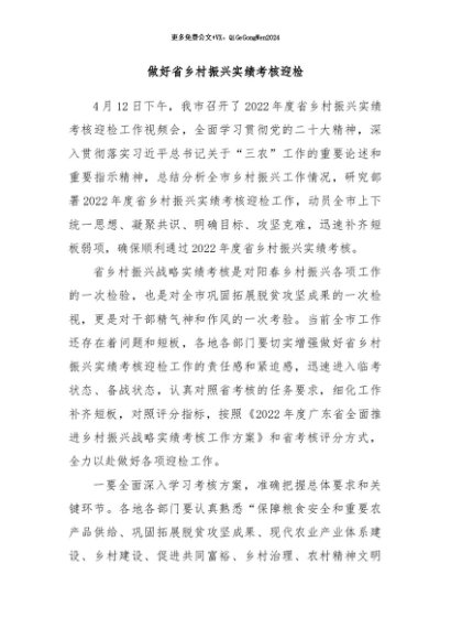 【七哥公文】2024年:做好省乡村振兴实绩考核迎检+更多免费公文+VX:QiGeGongWen2024