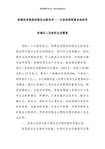 【七哥公文】2024年:构建优质高效的服务业新体系——以优质高效服务供给更好满足人民美好生活需要+更多免费公文+VX:QiGeGongWen2024
