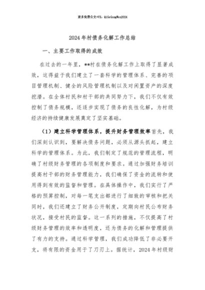 / 【七哥公文】2024年:2024年村债务化解工作总结+更多免费公文+VX:QiGeGongWen2024