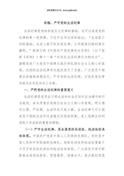 / 【七哥公文】2024年:讲稿:严守党的生活纪律+更多免费公文+VX:QiGeGongWen2024