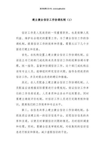 / 【七哥公文】2024年:建立健全信访工作协调机制(1)+更多免费公文+VX:QiGeGongWen2024