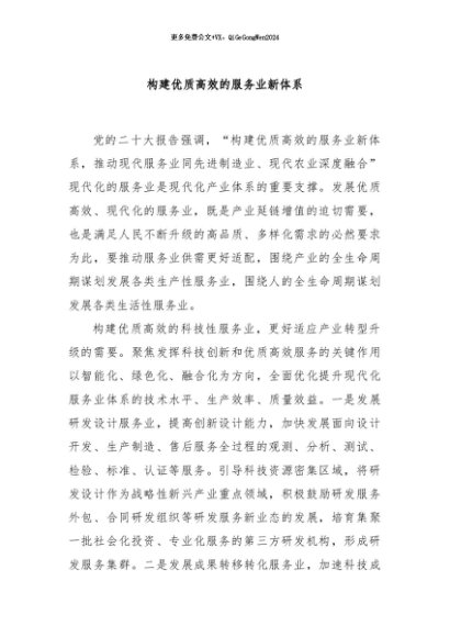 【七哥公文】2024年:构建优质高效的服务业新体系+更多免费公文+VX:QiGeGongWen2024