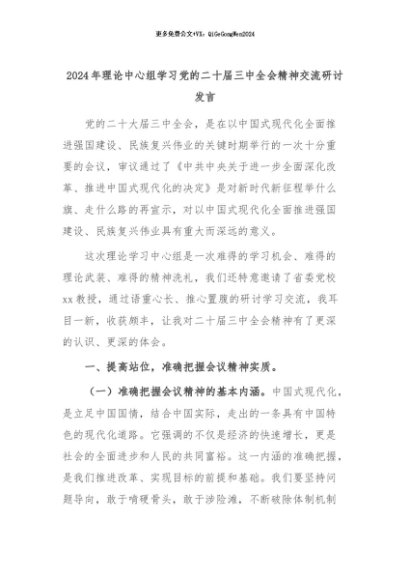 【七哥公文】2024年:2024年理论中心组学习党的二十届三中全会精神交流研讨发言+更多免费公文+VX:QiGeGongWen2024