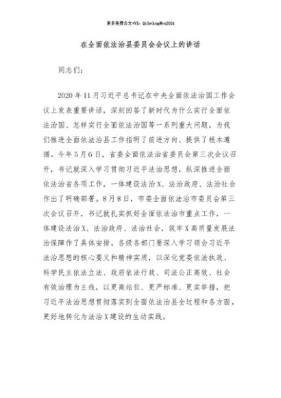 / 【七哥公文】2024年:在全面依法治县委员会会议上的讲话+更多免费公文+VX:QiGeGongWen2024