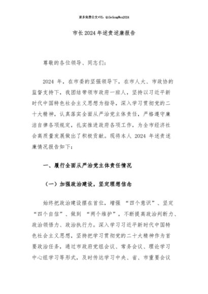 / 【七哥公文】2024年:市长2024年述责述廉报告+更多免费公文+VX:QiGeGongWen2024