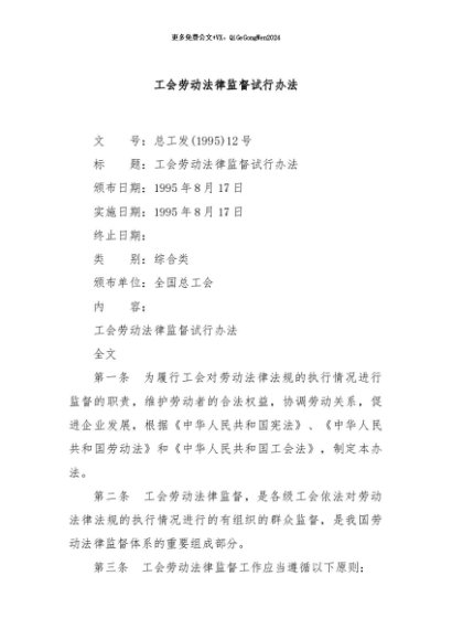 / 【七哥公文】2024年:工会劳动法律监督试行办法+更多免费公文+VX:QiGeGongWen2024